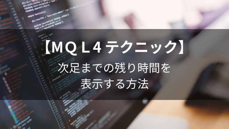 チャート上に、次足までのカウントダウンタイマーを設置するプログラムをご紹介します。 表示例 5分足 時間軸がM1、M5、M15、M30、H1のチャートでは、「分:秒」形式で... -