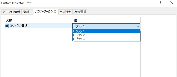 テクニカルインジケータのパラメータは、予め用意されているインジケータ定数を使用することで、簡単にプルダウン形式にすることができます。