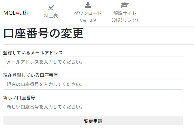 MQLAuthは、EA利用者自身で登録口座番号を変更する機能や登録口座番号照会機能を公開しています。